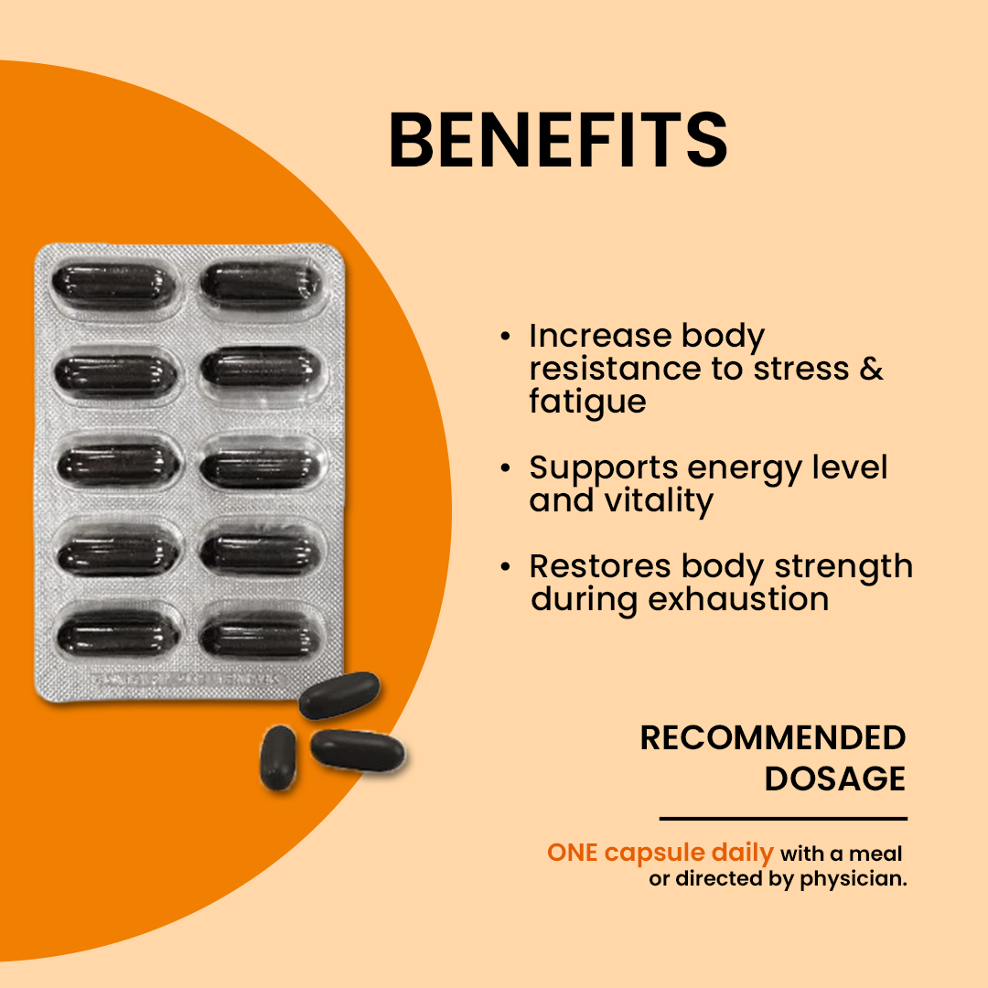 Ginsomin supports energy and vitality, act as an energy booster and enhance vitality and stamina, which is vital for restoring body strength during exhaustion.