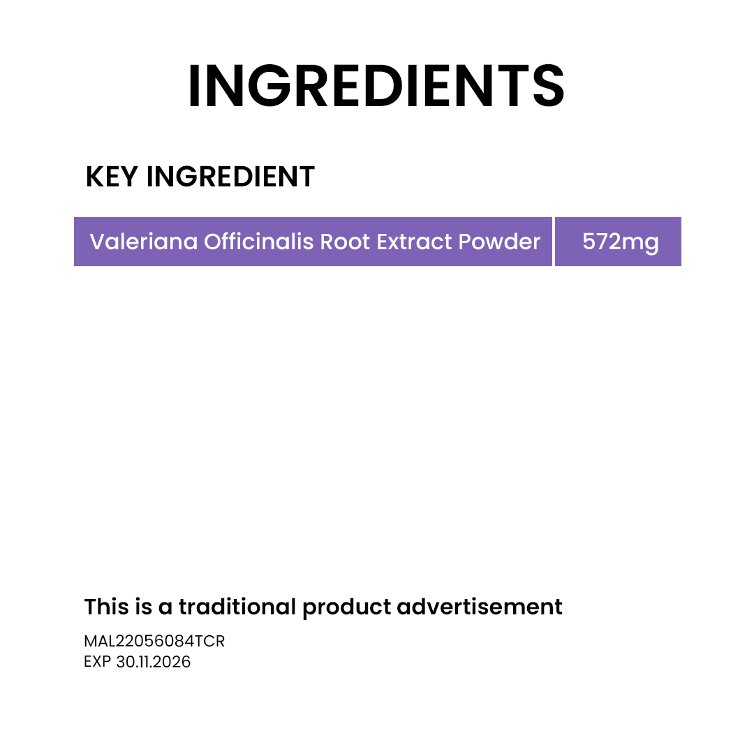 Herbalmeds Valerian Extract 572mg is traditionally used for those who experience difficulty in sleep. It contains Valeriana Officinalis root extract powder which is scientifically tested to promote good and restorative sleep.