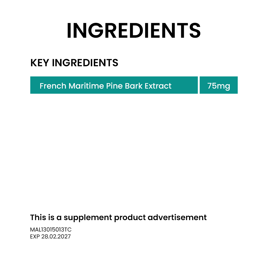 Pycno®sight 75mg features 75mg of high-strength Pycnogenol®, an antioxidant derived from French Maritime Pine bark. Rich in procyanidins (65%), it supports eye health and maintenance. Enhance your vision with this powerful formula designed for optimal eye wellness.