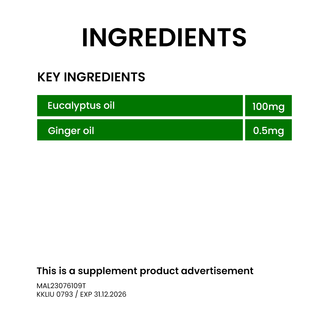 Eugica Coff Cough Relief Capsules offer natural relief from coughs using Eucalyptus and Ginger oil. Convenient and easy to use, these capsules are ideal for soothing cough symptoms anytime, anywhere. Perfect for cold-related coughs!