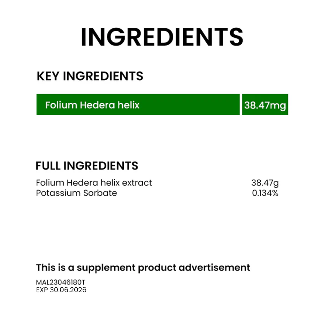 Dried Ivy leaf extract is traditionally used for the relief of cough and throat irritation and for reducing phlegm. It comes in tasty and soothing honey flavour, suitable for both adults and children.